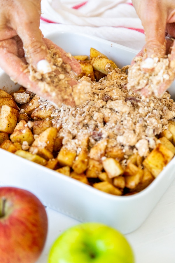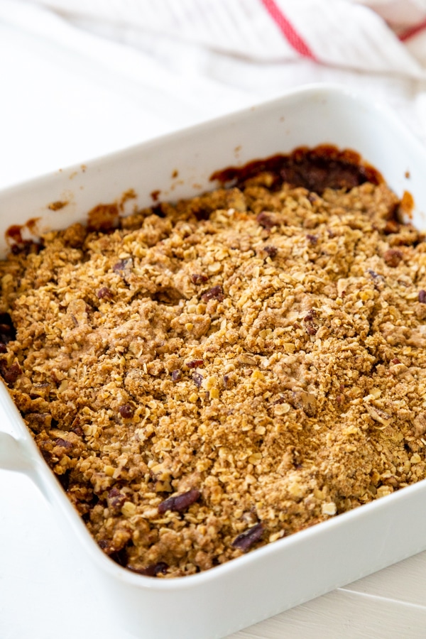 You still get all of the flavor and texture of a pie, thanks to the sweet apples and the crisp part, but you don’t have to make two crusts. One for the pumpkin and one for the apple.