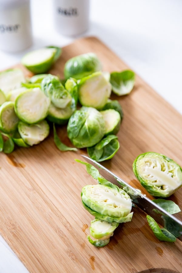 - 1 pound of Brussels sprouts – washed and ends trimmed