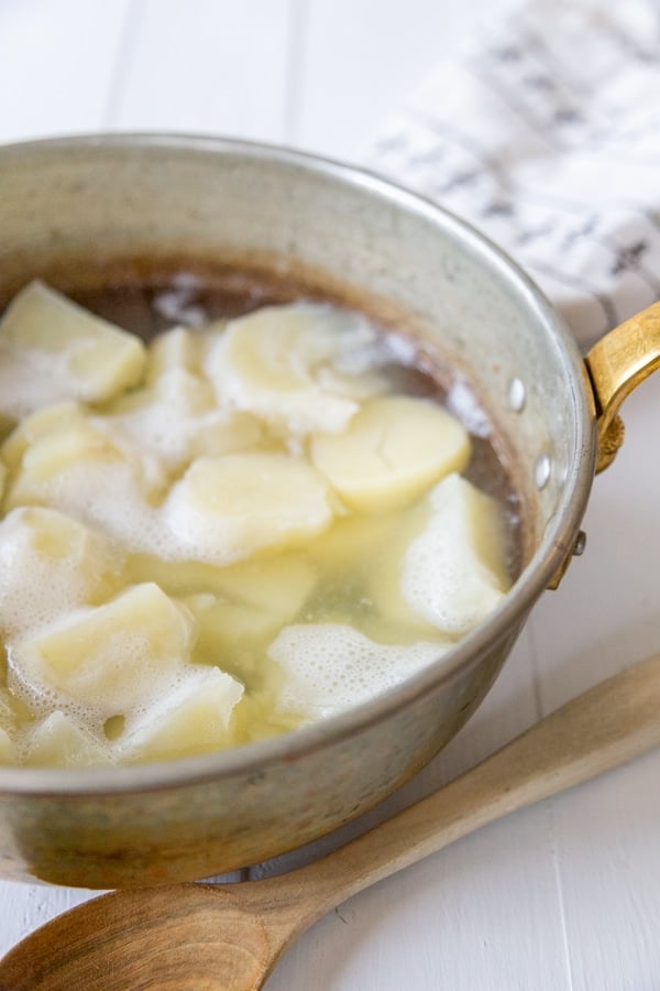 - 3 pounds Yukon Gold potatoes or 10 medium potatoes – scrub with water and cut into quarters SEE NOTE