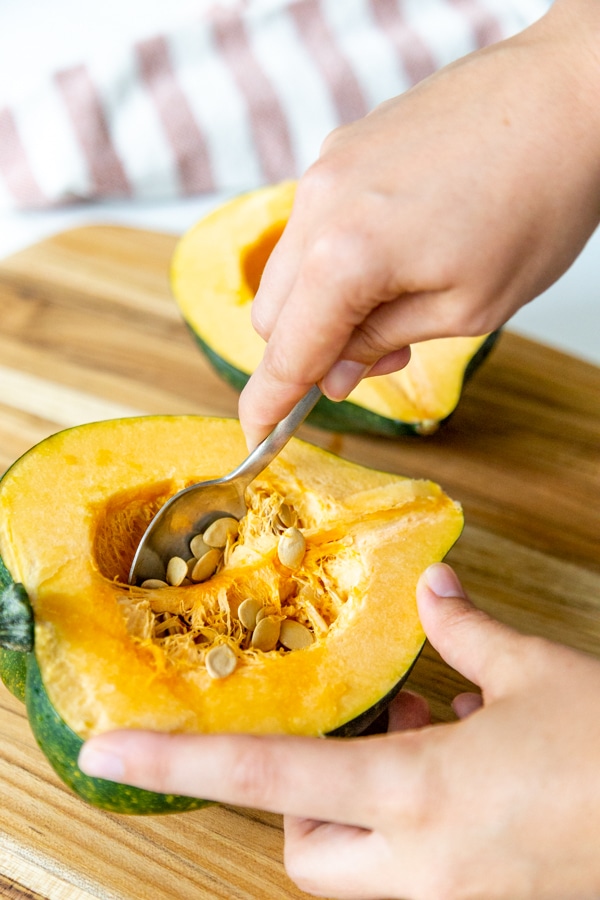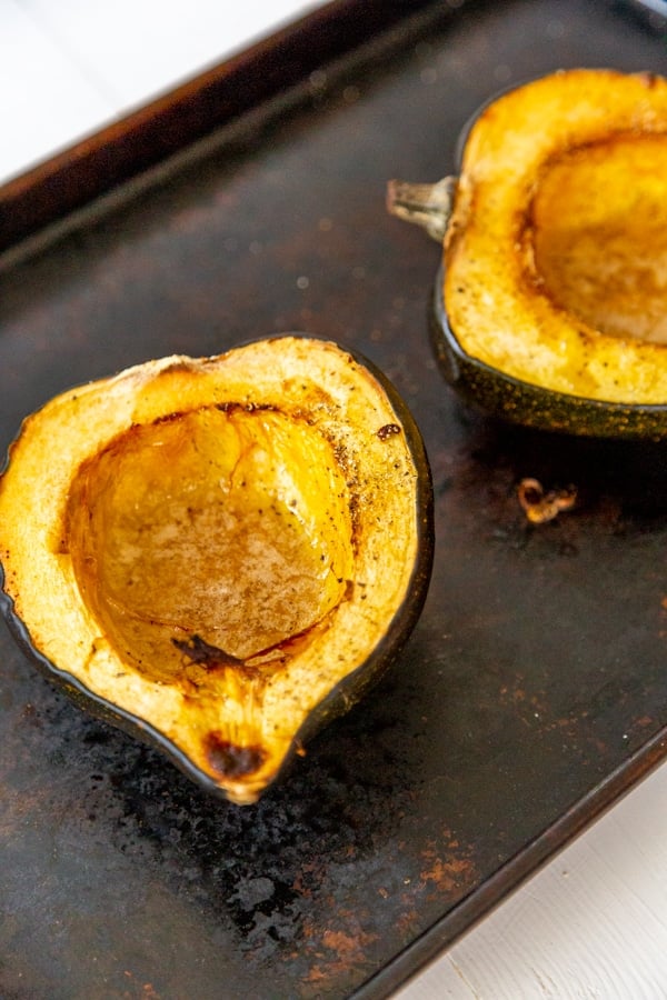 This stuffed squash recipe starts with a roasted acorn squash that’s beautifully caramelized on the edges of the squash, then filled with healthy quinoa and seared vegetables.