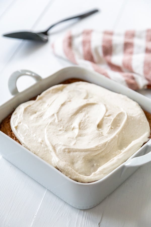The vegan cream cheese frosting is super easy to make and it tastes delicious, although you can omit it if you just want the cake unfrosted.