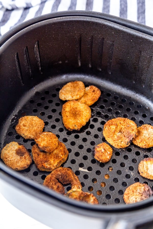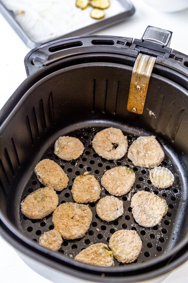 For the air fryer, spray a light coating of oil on top of the pickles before frying.