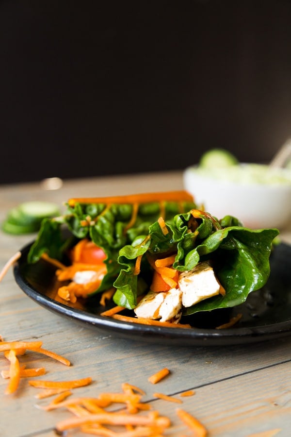 Easy Tofu Lettuce Wrap with Avocado Tzaziki