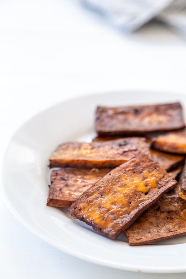 For best results, spray a thin layer of oil on the top of the tofu and turn it twice while it bakes. This will help all sides to crisp up.