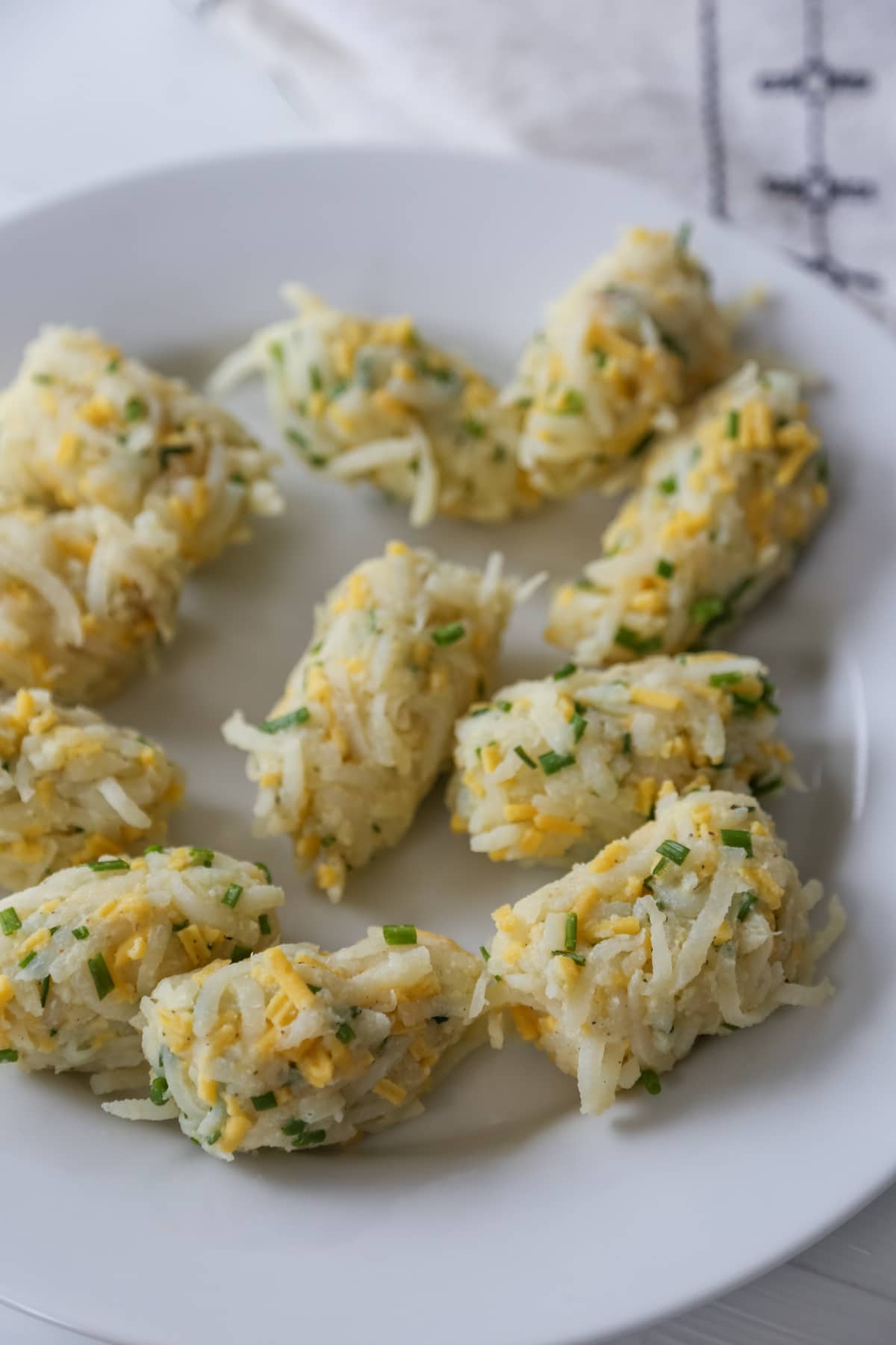 - Form the potato mixture into 1 ½ inch tots. You can make them as large or as small as you like. Adjust the cooking time for the size of the tots.