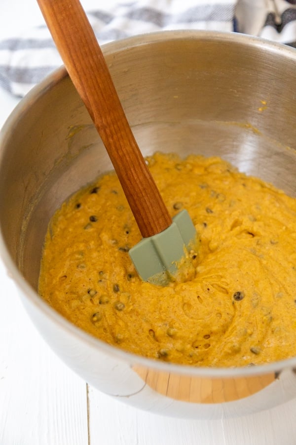 Add the applesauce, vanilla, and pumpkin and mix until completely combined.