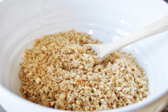 As you can see, the nuts need to be ground into small little pebbles. Use a food processor if you have one. I recommend the Cuisinart DLC-10S Pro Classic 7-Cup Food Processor, White, available at Amazon.com.