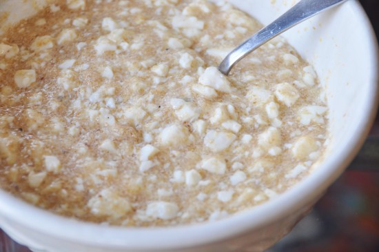 As I was grinding the nuts, and mixing up the flax seed egg replacer, I started to panic, because this recipe called for FIVE eggs! From my experience, any recipe that calls for more than three eggs doesn’t turn out too well if you’re going to use an egg replacer. But as soon as I started stirring the flax seed and water together I was able to calm my energy, because I knew it was going to work out just fine.
