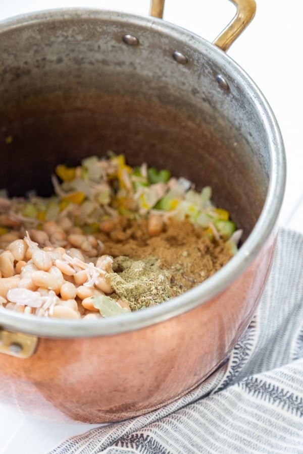 - Add the garlic and cook for 2 minutes. Add the beans, the 3tbsp cumin, 1 teaspoon ground oregano, 1 teaspoon grounds sage, 1 teaspoon ground parsley, and ¼ teaspoon white pepper, and stir. Cook for 2 minutes so the spices release their oil. This creates the best flavor.